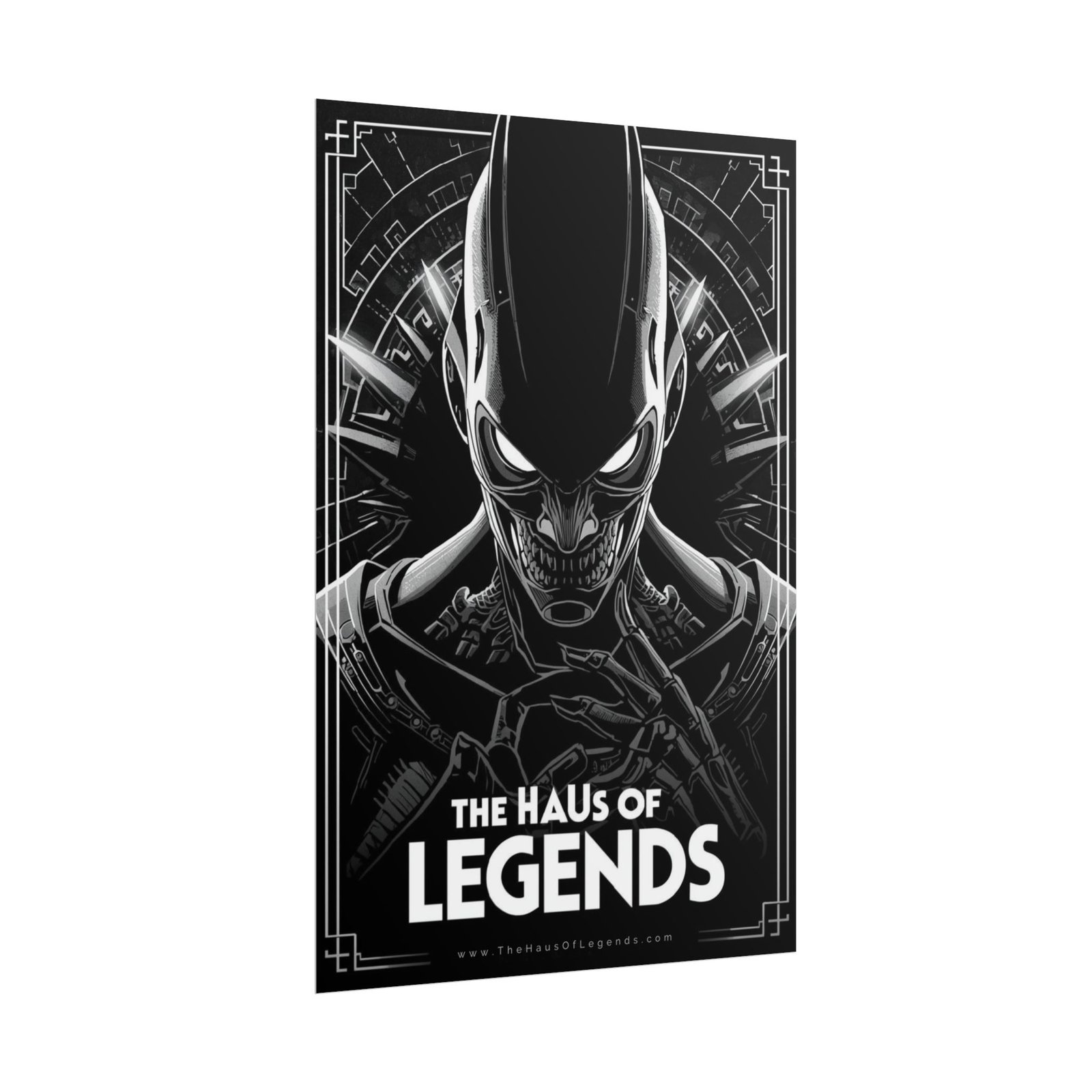A striking rolled poster that brings bold, high-contrast artwork to your walls. The menacing monochrome figure and geometric backdrop create a dark, cinematic mood—great for transforming a blank wall into a focal point. Choose from three paper finishes to control texture and sheen: archival fine art for painterly depth, matte for a subtle, art‑print look, or semi-gloss for crisp photographic detail. Available in multiple sizes and orientations so it fits gallery walls, studio nooks, or entertainment rooms. Shipped rolled to protect edges and ready for framing or mounting.