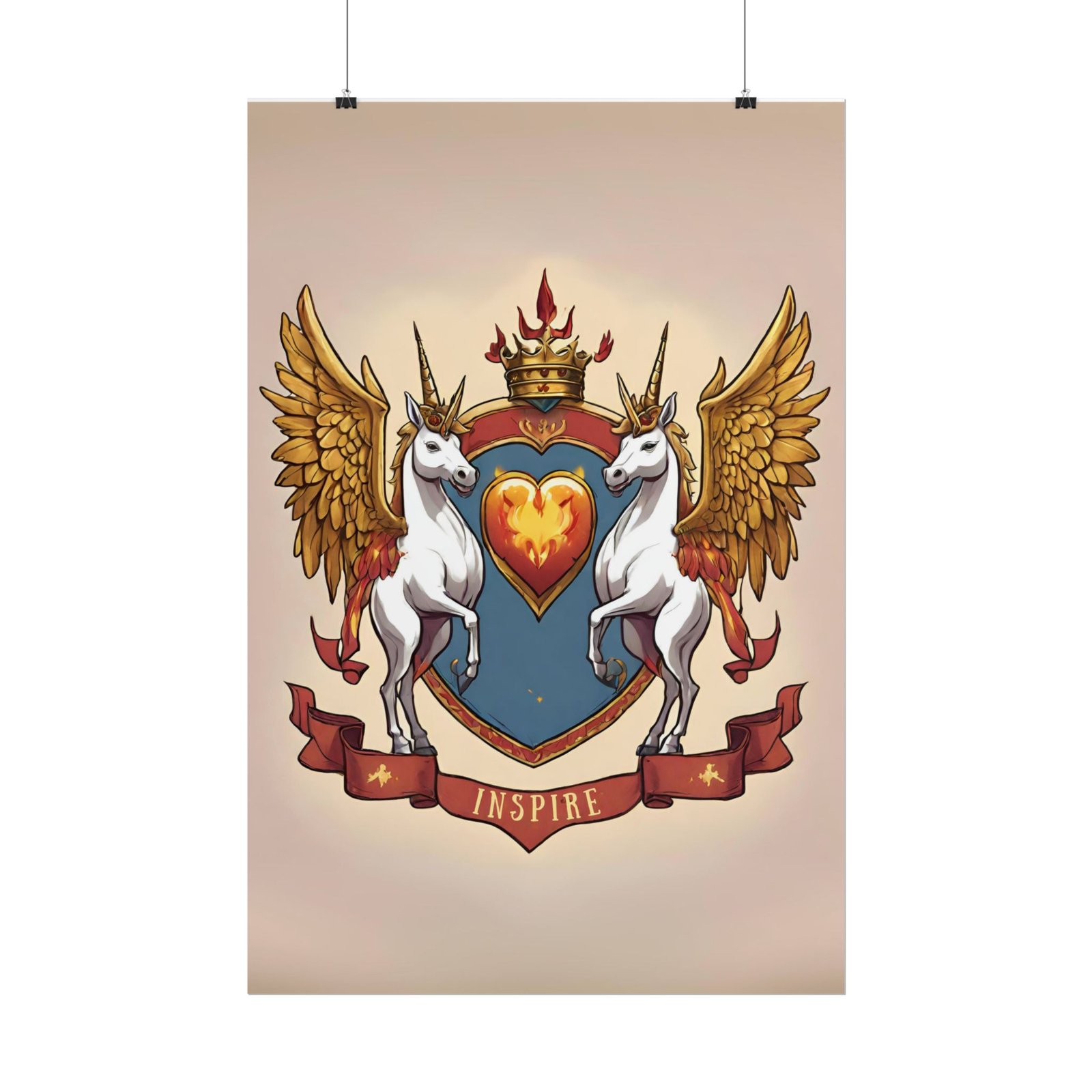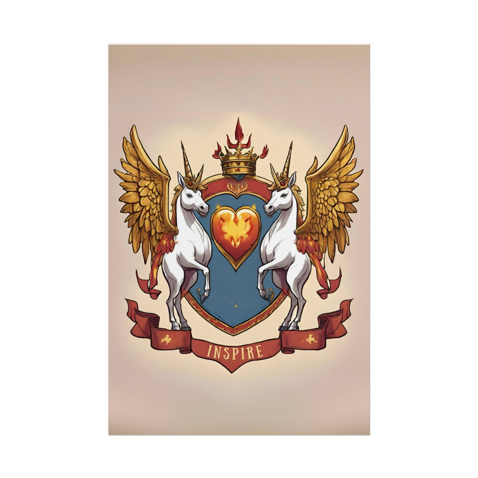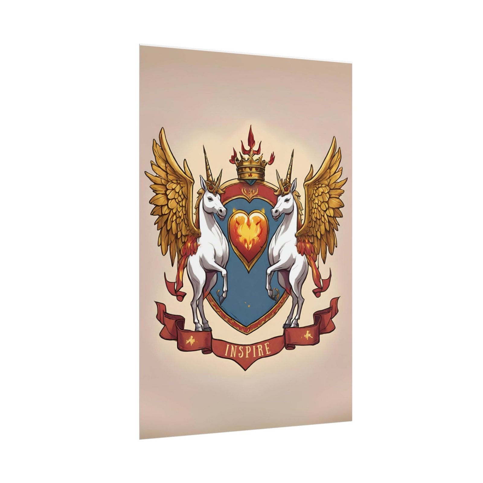 Unicorn Crest “Inspire” Rolled Poster, Magical Decor, Fantasy Gift, Kids Room Decoration, Unique Home Decor, Motivational Poster. Transform your space with these vibrant rolled posters, perfect for adding a touch of inspiration and whimsy to any room. Featuring stunning designs printed on high-quality paper, each poster radiates a unique charm that can uplift your mood and aesthetic. These art pieces are ideal for anyone looking to personalize their home, office, or creative space. Perfect for art enthusiasts, students, or anyone celebrating special moments, these posters make excellent gifts for holidays, birthdays, or housewarming events. Bring life to your walls and let your personality shine with these expressive artworks!