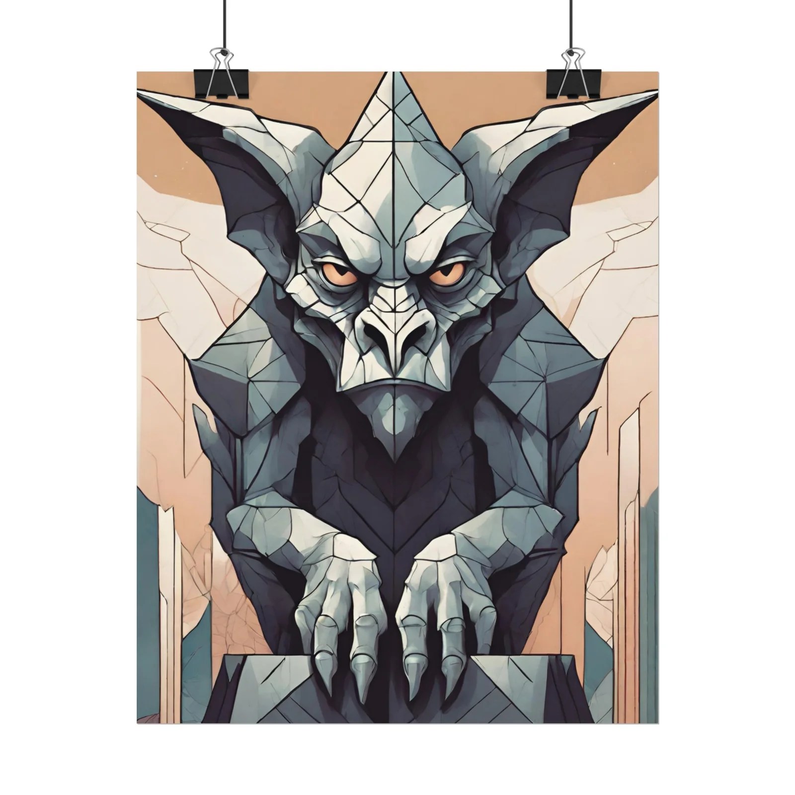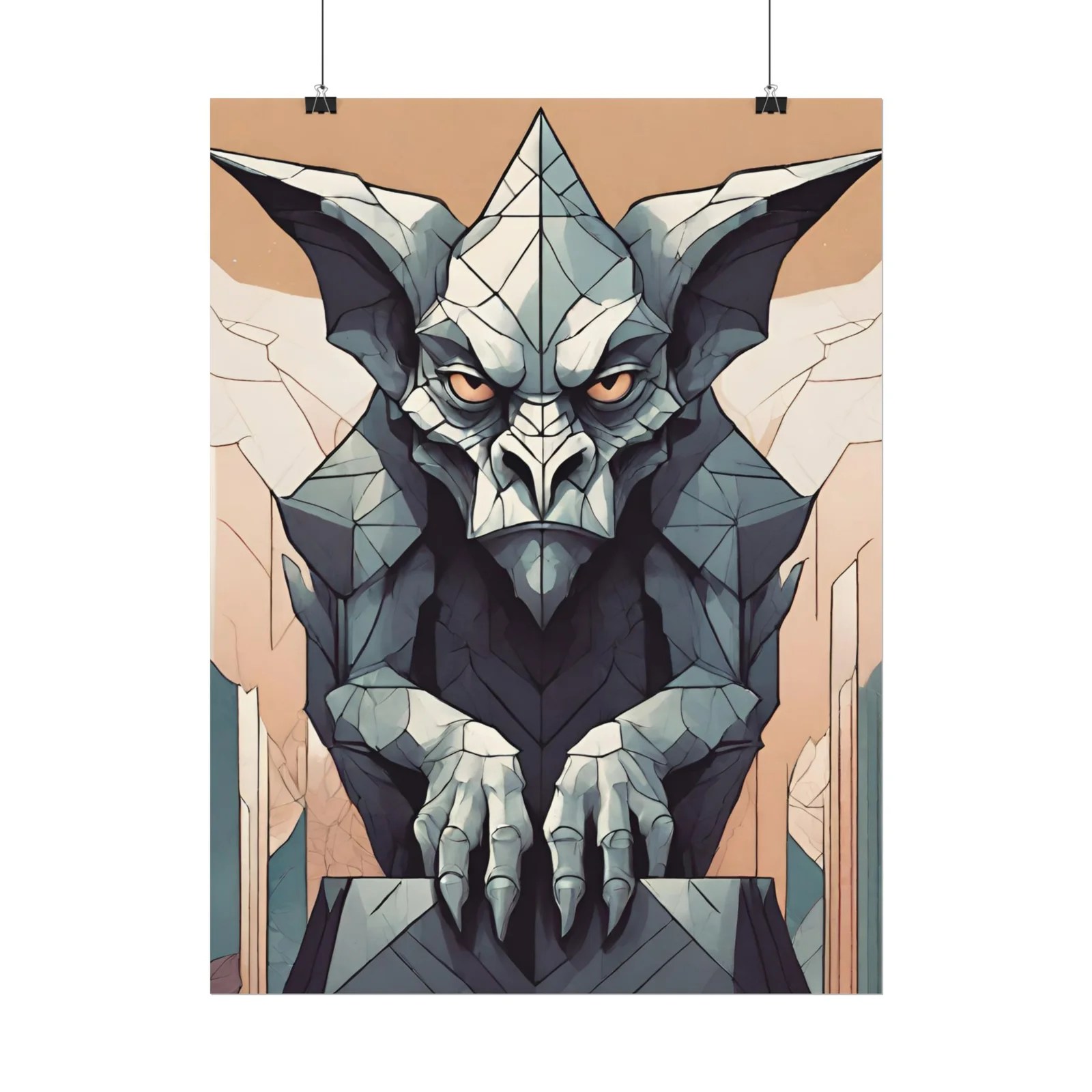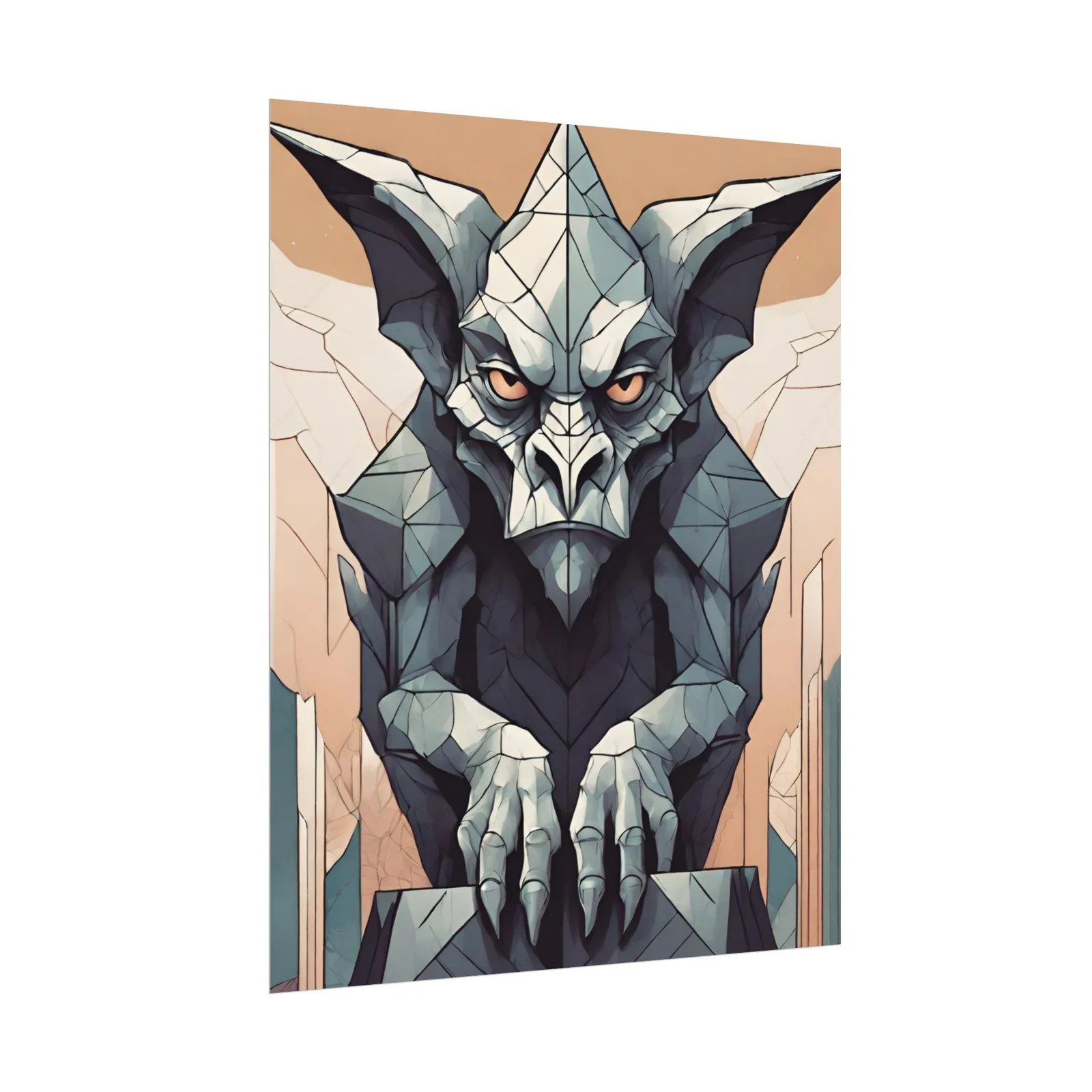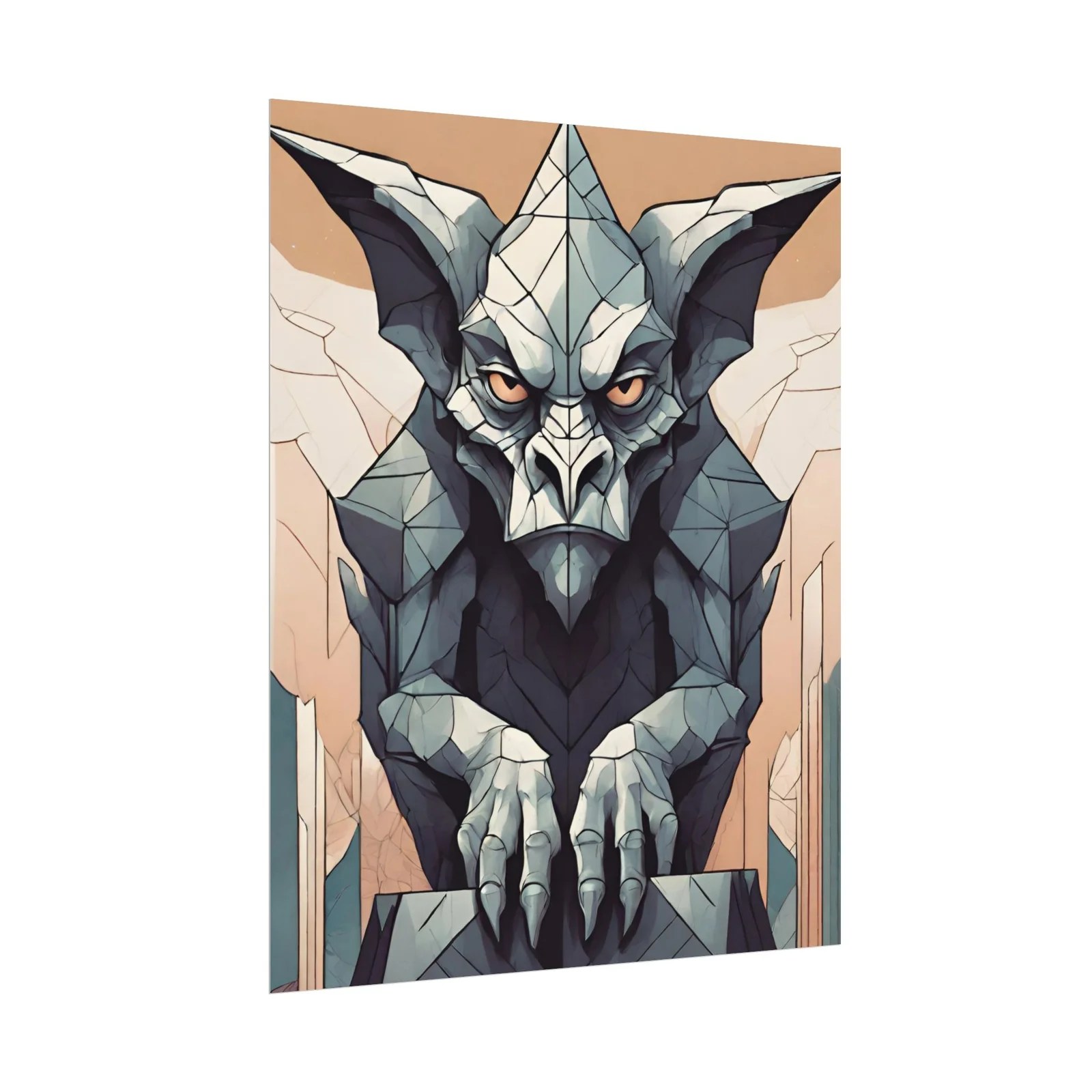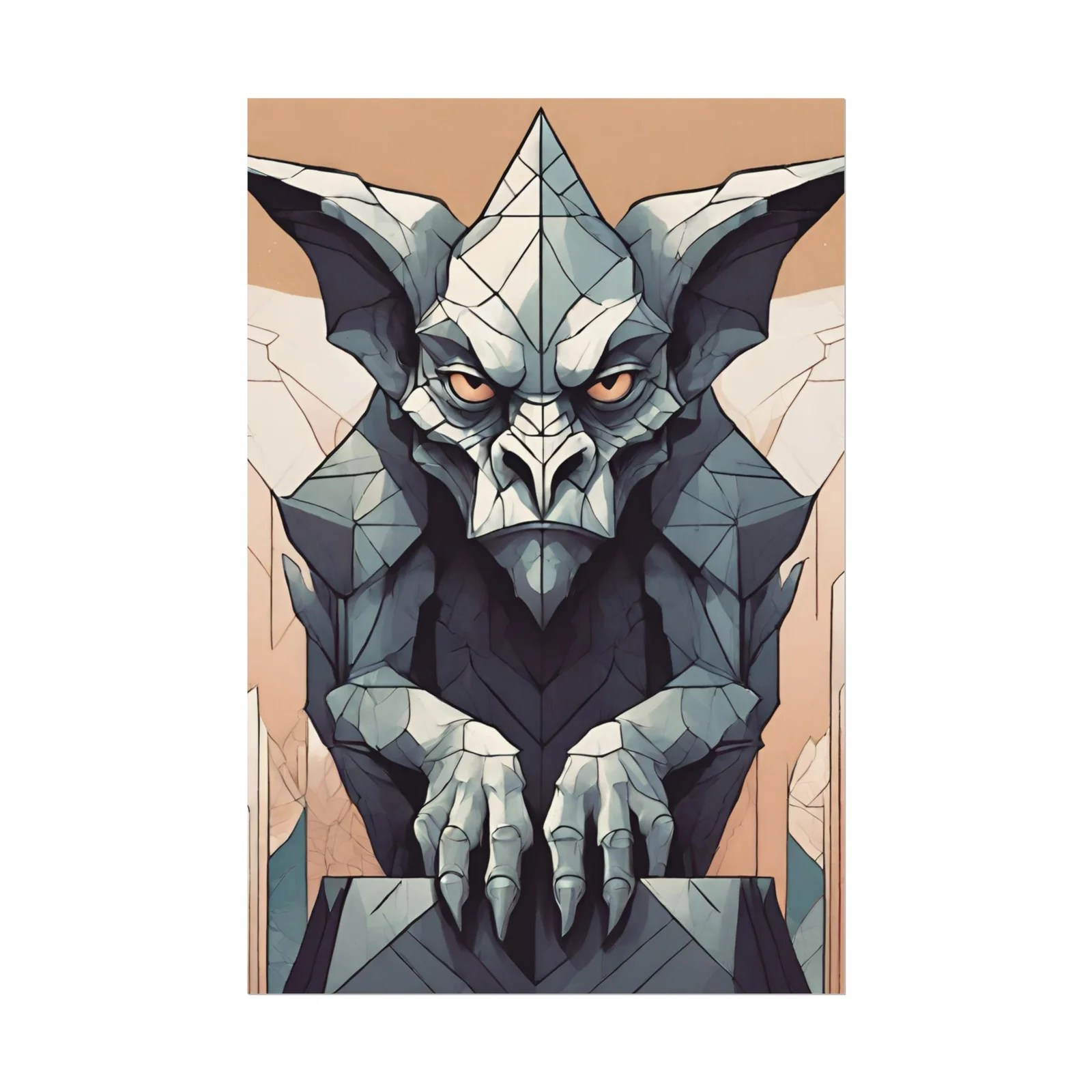 This geometrical gargoyle poster brings a unique and edgy vibe to any room. Perfect for fans of urban or architectural design, this poster can be a conversation starter or a statement piece in your home decor. Ideal for Halloween or Gothic-themed parties, this poster is a must-have for those who love dark aesthetics.